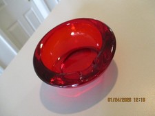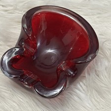 Vintage Murano Red Clear Art Glass Ashtray Mid Century Modern MCM Very Heavy