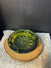 Vtg Anchor Hocking Fairfield Starburst Avocado Green Glass Ashtray Thick & Heavy