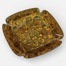 Vintage Amber Glass Ashtray Bubble Texture 4” Mid Century Trinket Dish