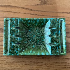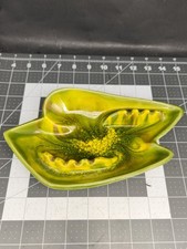 Vintage mid-century Green Drip Splatter Glaze Ceramic Ashtray Retro MCM Catch Al