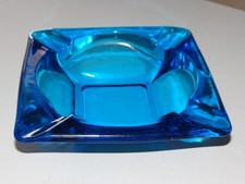 Vintage blue Mid Century Modern blue glass ashtray square 6"X 6" MCM large
