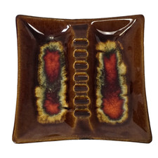 Vintage USA Pottery Drip Glaze Ashtray 8.5" Square Mid Century Decor Retro MCM