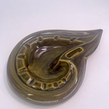 Amoeba Ashtray Olive Green Glazed Ceramic Vintage Retro 1970s Mid Century Signed