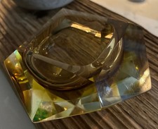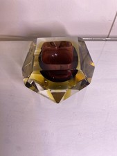 Murano Ashtray Mid Century Modern Faceted Yellow& Golden Amber Glass Art Bowl