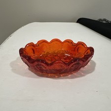 Stunning Red/Orange Blown Art Glass 6" Ashtray Dish MCM Style