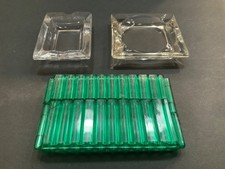 VTG MCM Set Of 2 Beautiful Square Crystal Ashtrays & LUCITE GREEN CIRGARETTE BOX