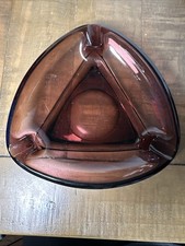 Mid-Century Modern Amethyst Glass Ashtray-triangular, See Flaw On Bottom In Pics