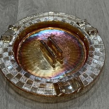 Mid Century Marigold Carnival Glass Ashtray with Matchbook Holder 5.75” Diameter