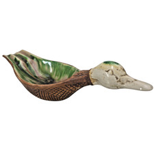 Ashtray Duck 9.25 Ceramic Mid Century MCM S-36 Green Brown Colony Dish Vintage