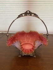Antique Victorian Fenton Cased Art Glass Ruffled Edge Brides Basket Bowl