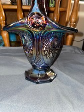 Indiana Amethyst Carnival Glass Heirloom Basket Iridescent