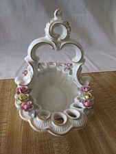 STUNNING ANTIQUE VICTORIAN Pink/White Brides Basket/Bowl W/Metal Holder 10.75"H