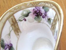 ANTIQUE SMALL PORCELAIN BASKET NORITAKE NIPPON HANDPAINTED GOLD AND VIOLETS