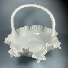 Vintage Fenton Art Glass Milk Glass Hobnail Ruffled Bride's Basket