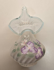 Fenton Art Glass 1999 Shelley Fenton Signature Handpainted Opalescent Tulip Vase