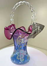 Fenton Art Glass Plum Crest Basket Hand painted Signed By Bill Fenton #1240