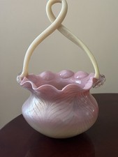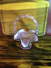 Fenton Pink Iridescent Opalescent Glass Flower Decorative Basket with Handles
