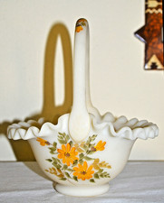 Fenton Petite Fleur Wheat Basket Flowers Hand Painted and Signed C. Smith 1984