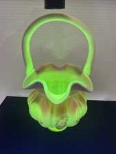 Fenton Uranium Burmese Basket Hand Painted Roses Signed By Artist & W.C. Fenton
