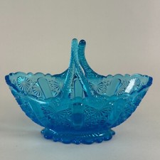 Mid Century Hand blown Art Glass Fenton Blue Basket Thumb Print Design - Mint