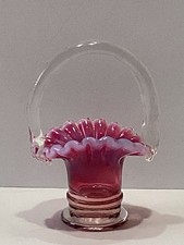 Vintage Fenton Cranberry Pink & Clear Ruffled Hand Blown Spatter Footed Basket