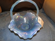 Fenton Glass Basket Lily Of The Valley Opalescent Aqua Blue
