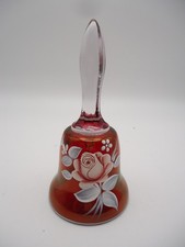 Vintage 1977 Fenton Art Glass Hand Painted Rose Ruby Red Glass Bell Signed