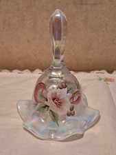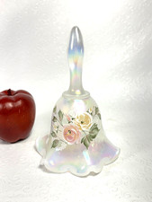 Fenton Art Glass Bell French Iridescent White Opalescent Hand Painted Flowers