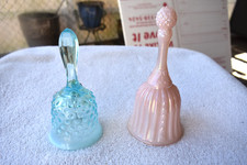VTG Fenton Pink Opalescent Glass Bell & Fenton Lt Blue Hobnail Opalescent bell