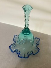 Fenton Art Glass Cobalt & Aqua Bell with Blue Crest Edge