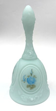 EXQUISITE FENTON ART GLASS HANDPAINTED GREEN OPALESCENT SATIN GLASS 6" BELL