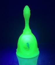 VTG! URANIUM Fenton Custard Glass Bell ~ Hand Painted~”Bluebirds In Medallions”