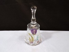 Fenton Hand Painted Clear Glass Miniature Mini Bell Purple & Blue Flowers