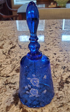 Fenton HandPainted Cobalt Blue Forget Me Nots Heart Handle Special Edition Bell