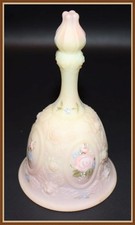FENTON ART GLASS " BURMESE HAND PAINTED BELL " URANIUMN - ROSES - VERY DETAILED