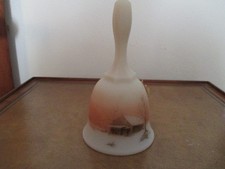 White Frosted 4.5" Fenton Bell With Landscape & Flowers Signed By Artist