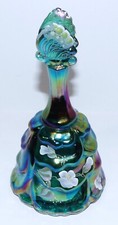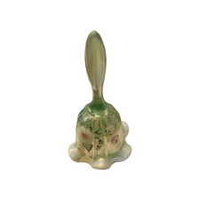 Fenton Opalescent Meadow Beauty Green Crest Hand-painted Bell 6.5”