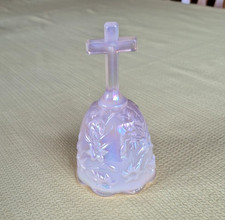 Vintage 80s Fenton art glass Iridescent Pink Bell w/Cross Handle