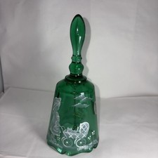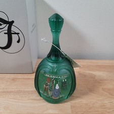 2000 Signed Fenton Spruce Green The Journey Handpainted Glass Bell