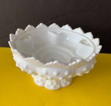 Vintage Fenton Footed HOBNAIL WHITE MILK GLASS 6 Candle Holder Bowl Center e