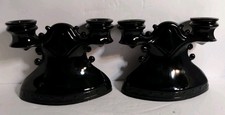 Vintage Pair Of LE Smith Mt Pleasant Black Glass Candle Holders 4.5" x 5.5" x 3"