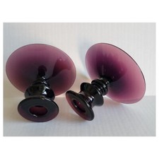 Vintage Amethyst Fancy Knob Candle Holder Set of Two