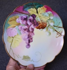 Antique Hand Painted Large 13” Cabinet Plate Wall Decor Grapes Signed Henninger