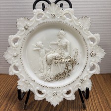 Antique Westmoreland Plate Milk Glass Cupid and Psyche 7.5" Lace Glass Edge