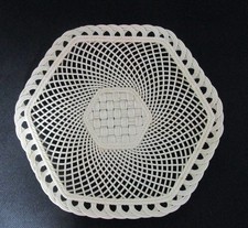 Antique 9.75" BELLEEK (Ireland) Woven Reticulated Porcelain Plate Signed & MINT