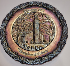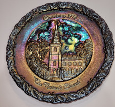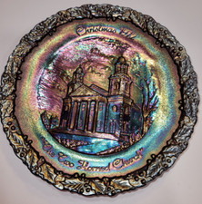 Fenton Carnival Glass 1972 Christmas in America 8" Plate The Two Horned Church