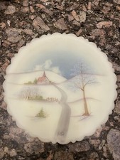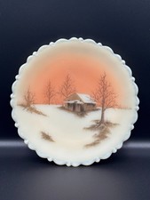 Vintage Fenton Custard Glass Plate Sunset Plate Barn Farm Signed