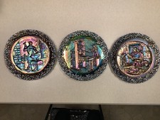 FENTON Iridescent Carnival Glass 1970 Christmas in America Plates