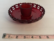 Vintage Fenton Ruby Red Hobnail Bowl w/ Candle Holder Centerpiece