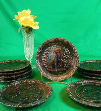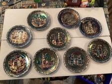 9 Fenton Carnival Glass Christmas/America Church Plates Incomplete Set 1970-81